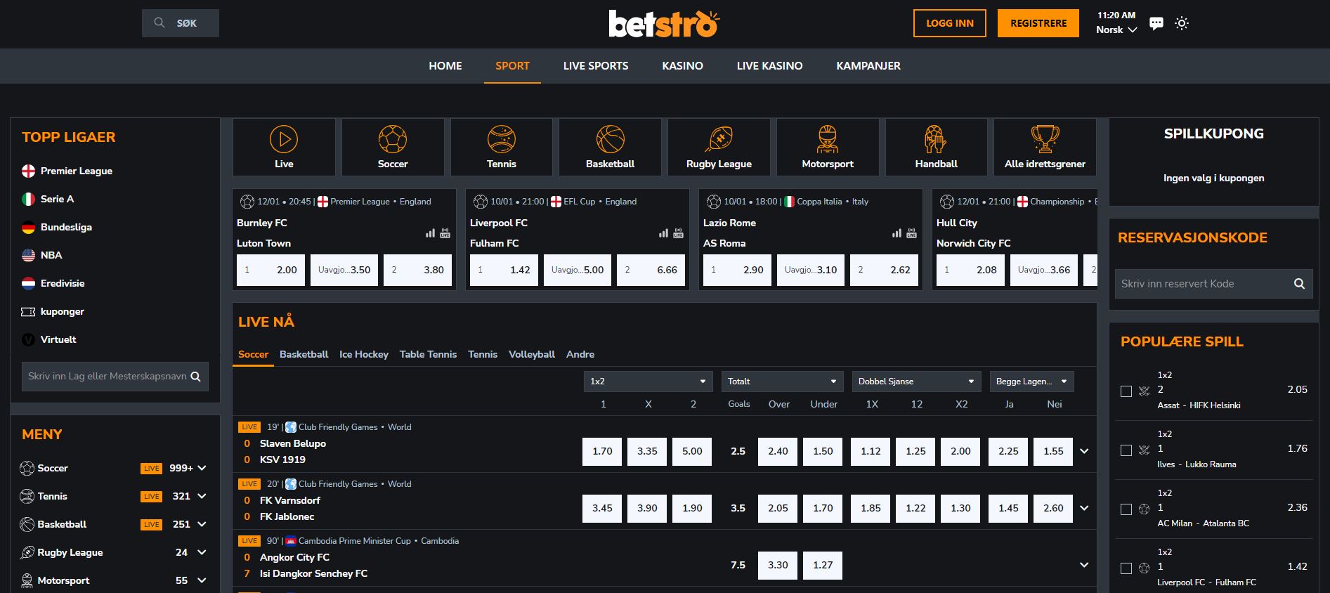 Betstro er en oddsside med stort utvalg av nasjonale og internasjonale sportsbegivenheter.
