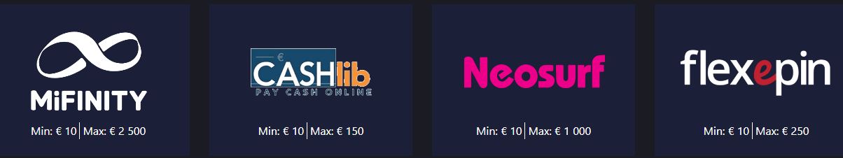 Visa, Mastercard, Mifinity og Neosurf er alternativene som er tilgjengelige for norske kunder.