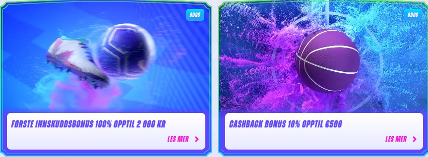Nye spillere får tilbud om dobling av det første innskuddet opptil 2000 kroner. Ellers er det ukentlig cashback og bonuspåfyll å få.