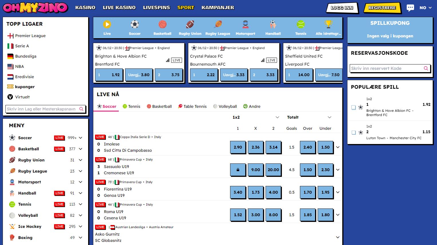 Hvilke typer sporter kan jeg spille på hos OhMyZino?
