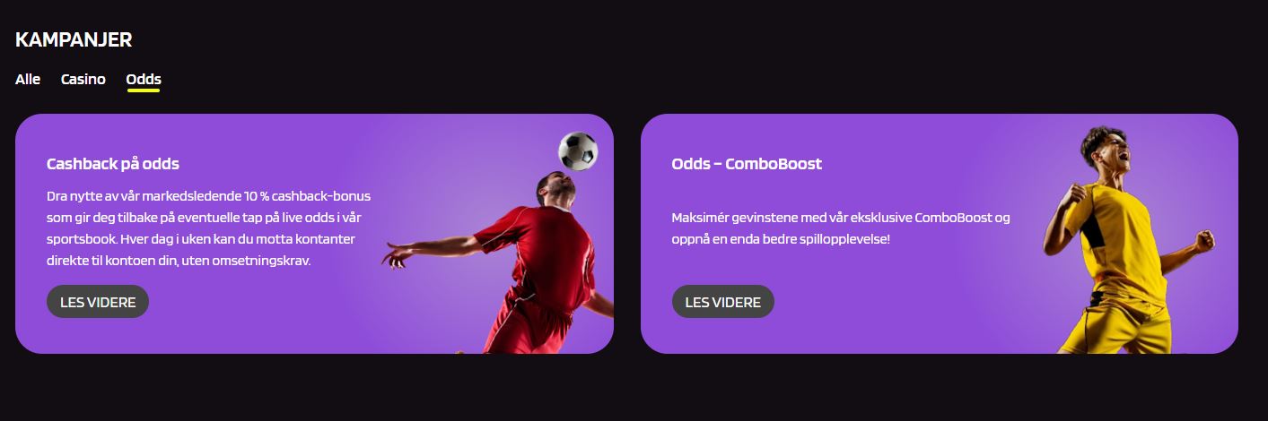 Selv om ProntoBet ikke tilbyr en velkomstbonus, har de andre kampanjer som cashback på odds og ComboBoost.