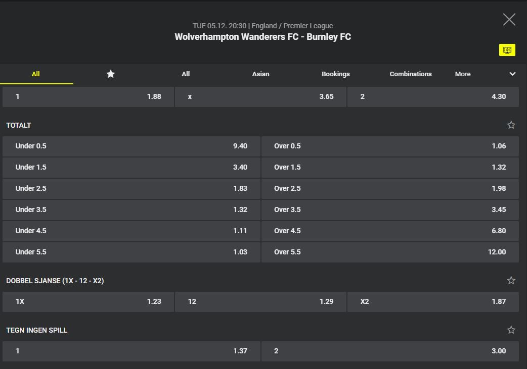 - Et bredt spekter av sportsmarkeder