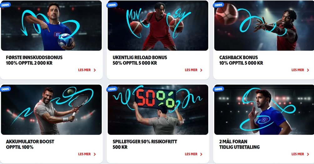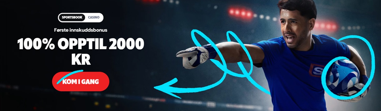 100 % velkomstbonus opptil 2000 kroner, ukentlig påfyll og cashback er bare noe av det du finner på denne sportsbookens kampanjeside.