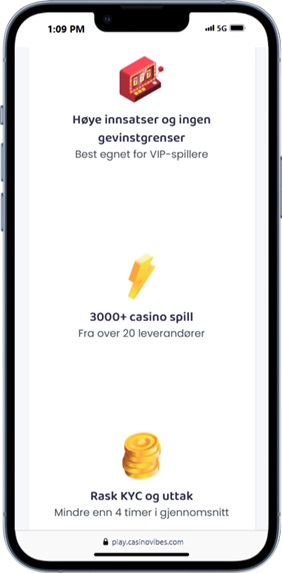 | CasinoVibes | 100% opp til 5 000 kr. | Ca. 8 000 | Nei |