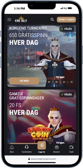 Casino Friday er et helt kongelig mobilcasino med en egen app. Velkomstpakken på opptil 5.000 kr. er virkelig en konge verdig, og det store spillutvalget sikrer at du aldri går tom for underholdning.