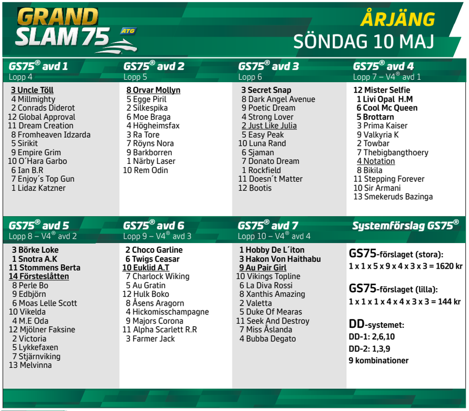 I V75 4 på Årjang i dag starter 1 Livi Opal M.H., P Mahony kusker.