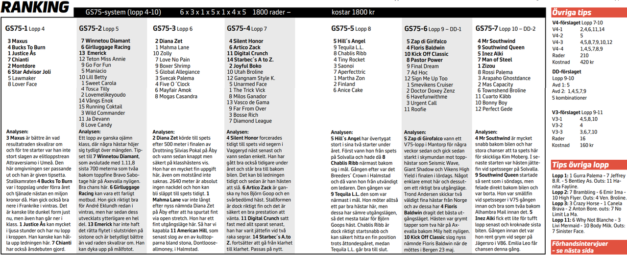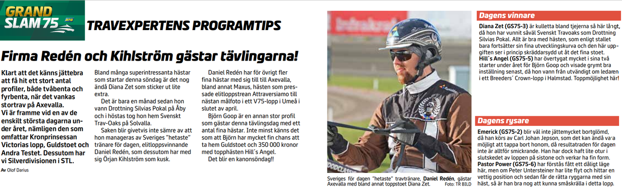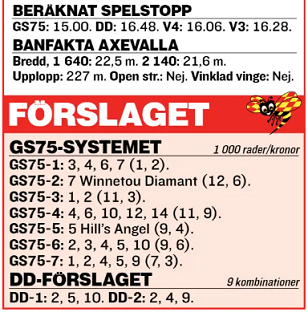 I V75 6 på Axevalla starter 5 Zap di Girifalco, B Goop kusker.